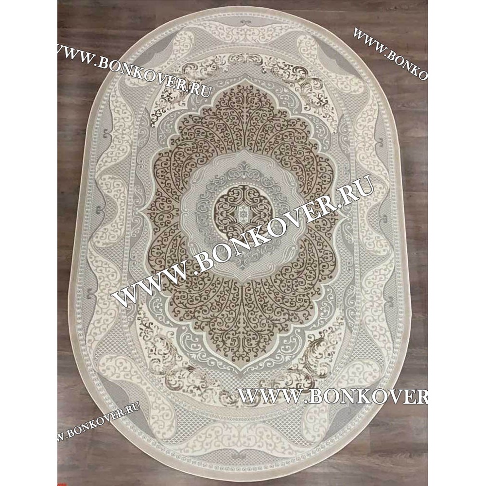 Красивый Ковер в гостиную дизайн 06 Бежевый Овал наполняет интерьер помещения теплом и уютом, гармонично сочетает в себе изящество и красоту. Он создан из экологически чистого сырья, прочный и долговечный.